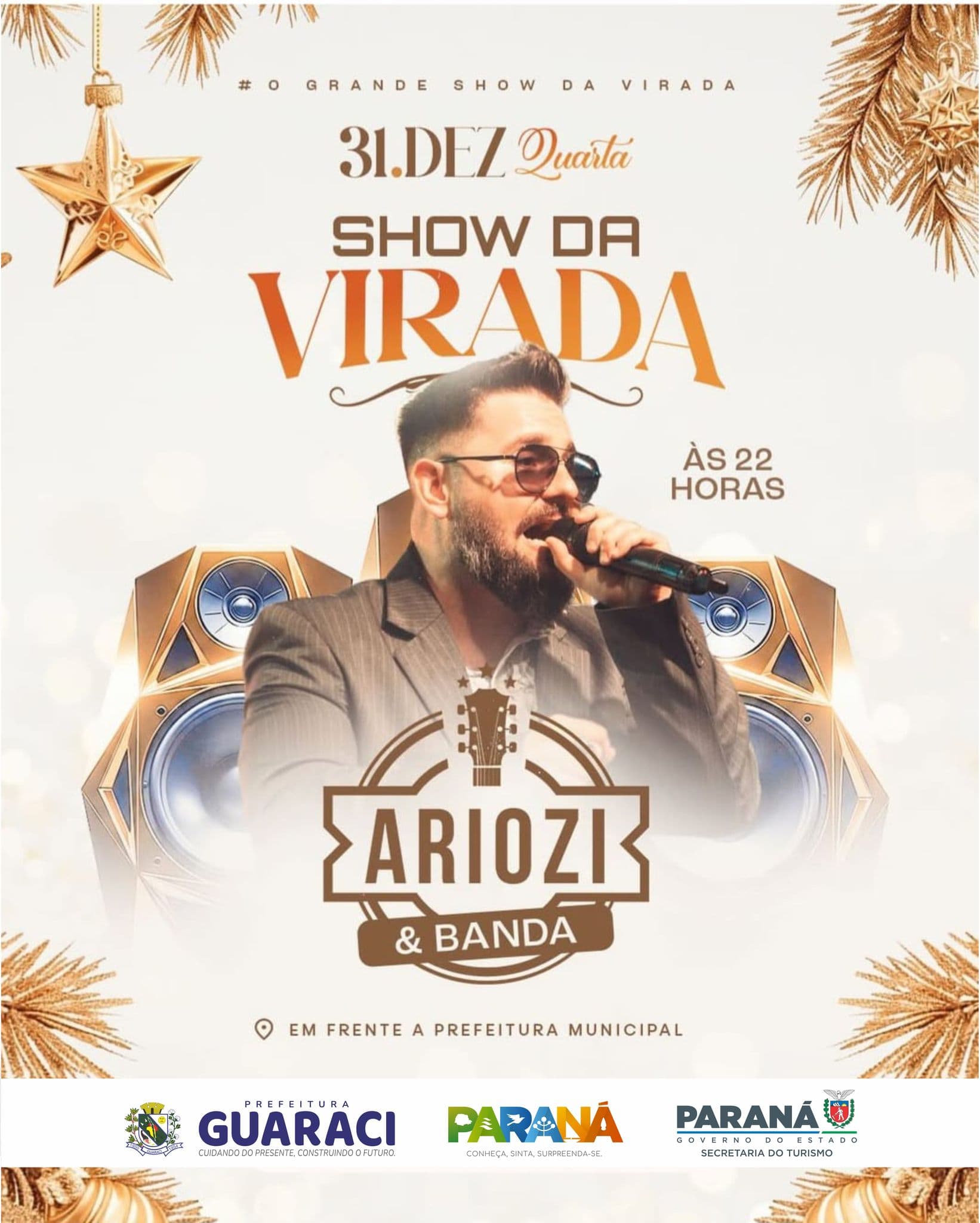 A Prefeitura de Guaraci realizará, na noite do dia 31 de dezembro, o Show da Virada, evento que marca a chegada do Ano Novo com música, alegria e confraternização entre as famílias do município e visitantes.